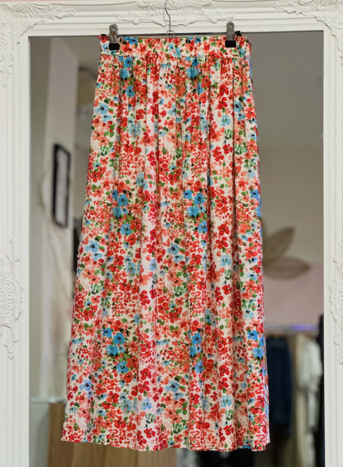 pportez une touche de fraîcheur et de féminité à votre garde-robe avec cette jupe longue fluide au motif fleuri dans les tons rouges. Sa matière légère assure un tombé élégant et un confort optimal tout au long de la journée.